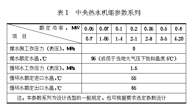 中央热水机组的参数应符合