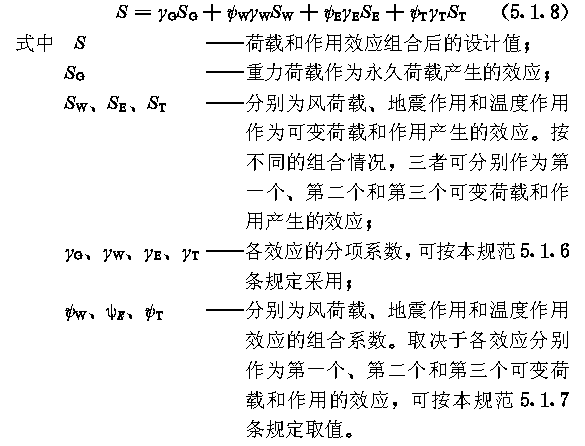 5.1.2 玻璃幕墙及其连接件应具有承载能力、刚度和相对于主体结构的位移能力,并应采用弹性活动连接。 5.1.3 非抗震设计的玻璃幕墙,在风力作用下玻璃不得破损;抗震设计的玻璃幕墙,在设防烈度地震作用下经修理后幕墙仍可使用;在罕遇地震作用下幕墙骨架不得脱落。 5.1.4 玻璃幕墙构件设计时,在重力荷载、风荷载、地震作用、温度作用和主体结构位移影响下,应具有安全性。 5.1.5 玻璃幕墙构件内力应采用弹性方法计算,其截面最大应力设计值不应超过材料强度的设计值: σ≤f(5.1.5) 式中σ——荷载和作用产生的截面最大应力设计值; 5.1.6 荷载和作用效应组合的分项系数,应按下列规定采用: 5.1.6.1 进行幕墙构件、连接件和预埋件承载力计算时: 重力荷载γG:1.2; 风荷载γW:1.4; 地震作用γE:1.3; 温度作用γT:1.2。 5.1.6.2 进行位移和挠度计算时: 重力荷载γG:1.0; 风荷载γW:1.0; 地震作用γE:1.0; 温度作用γT:1.0。 5.1.7 当两个及以上的可变荷载或作用(风荷载、地震作用和温度作用)效应参加组合时,第一个可变荷载或作用效应的组合系数可按1.0采用;第二个可变荷载或作用效应的组合系数可按0.6采用;第三个可变荷载或作用效应的组合系数可按0.2采用。 5.1.8 荷载和作用效应可按下式进行组合: 5.1.9 玻璃幕墙应按各效应组合中的最不利组合进行设计。