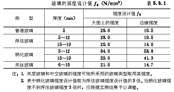 5.3.1 玻璃的强度设计值可按表5.3.1采用。