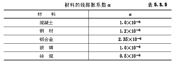 5.3.5 玻璃幕墙材料的线膨胀系数α可按表5.3.5采用。