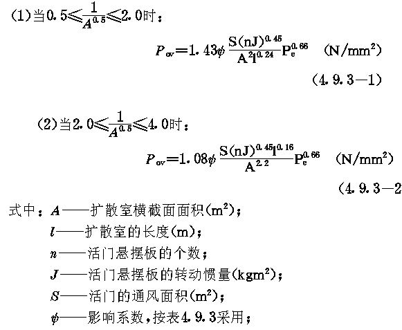 4.9.2 悬板活门直接接管道的余压Pov可按下式计算: