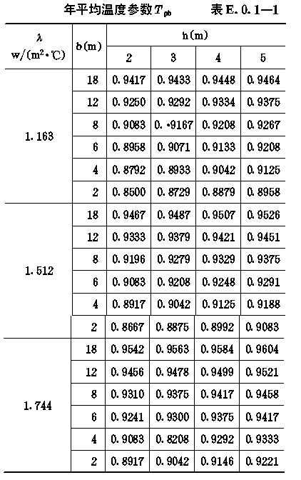 年平均温度参数T表E.0.1-1-1