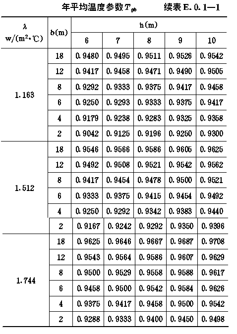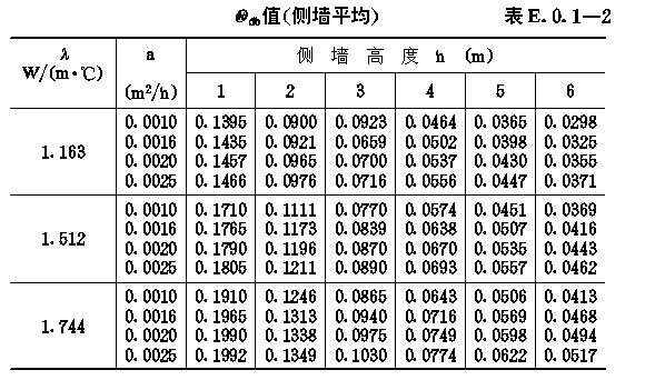 Θdb值(侧墙平均)表E.0.1-2