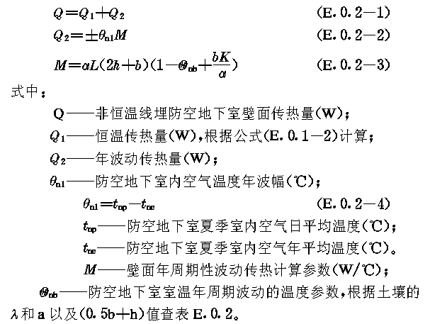 E.0.2 无恒温要求的防空地下室按下列公式计算:公式