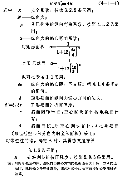第 4.1.1 条 构件轴心和偏心受压时,可按 下式 计算: