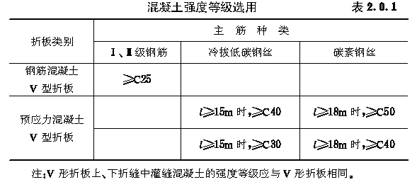 第2.0.1条 V形折板的混凝土强度等级,可按