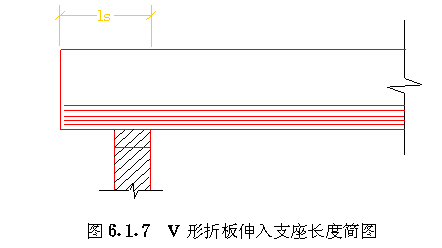 第六章 结构构造 第 6.1.1 条 V形折板屋盖伸缩缝最大间距宜为100m,但不应超过下部承重结构伸缩缝间距。如有充分依据或可靠措施,可予以增减。 第 6.1.2 条 V形折板构件钢筋的混凝土保护层最小厚度(从钢筋的外边缘算起)应遵守 表6.1.2 的规定,且不应小于受力钢筋的直径。 V形折板处在腐蚀环境、高湿度环境或为非卷材屋面时,其钢筋的混凝土保护层应适当加厚或采取其它有效措施(如刷涂料等)。 第 6.1.3 条 钢筋混凝土V形折板受力钢筋宜优先采用焊接接头。钢筋焊接接头的类型及质量应符合现行国家标准《混凝土结构工程施工及验收规范》的要求。 第 6.1.4 条 预应力混凝土V形折板的预应力钢丝需采用绕丝接长时,其搭接长度:冷拔低碳钢丝不应小于60d;碳素钢丝不应小于120d。d为钢丝直径。 第 6.1.5 条 受力钢筋的接头位置应相互错开。当采用非焊接搭接接头时,在规定的搭接长度的任一区段内,当采用焊接接头时,在焊接接头处的35d且不小于500mm区段内,有接头的受力钢筋截面面积占受力钢筋总截面面积的百分率:在受拉区应不大于25%;在受压区应不大于40%。 第 6.1.6 条 当钢筋网片为分段点焊时,网片之间搭接长度应不小于150mm,并将搭接部分适当绑扎。 第 6.1.7 条 在均布荷载作用下,钢筋混凝土V形折板伸入支座内的长度ls应不小于240mm( 图6.1.7 )。预应力混凝土V形折板应按以下规定采用: 一、冷拔低碳钢丝:ls≥240mm; 二、碳素钢丝: |