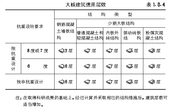 第 1.0.4 条各类大板建筑的层数应符合 表1.0.4 的规定。