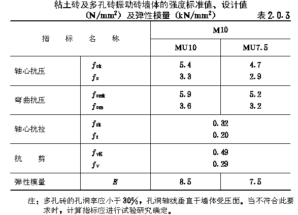 第二章 材料 第 2.0.1 条普通混凝土的各项计算指标应符合表2.0.1的规定。对于空心墙板应将按净截面计算的混凝土轴心抗压强度值,乘以折减系数0.8。普通混凝土的剪变模量Gc=0.4Ec。用立模成型的墙板,其强度应按表列数值乘以折减系数0.85。 第 2.0.2 条轻集料混凝土的各项计算指标应符合现行行业标准《轻集料混凝土技术规程》JGJ51的规定。 ??? 粘土砖砌体的各项计算指标应符合现行国家标准《砌体结构设计规范》GBJ3及《建筑抗震设计规范》GBJ11的规定。 第 2.0.4 条蒸养粉煤灰混凝土的各项计算指标,必须按所用原材料及生产工艺的不同,通过大量试验统计确定。