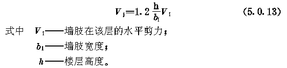 第 5.0.13 条墙肢竖缝剪力V j ( 图5.0.13 ),可按 下式 计