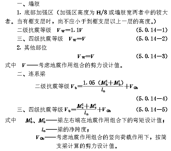 第 5.0.14 条考虑抗震等级的墙肢及连系梁剪力设计值应