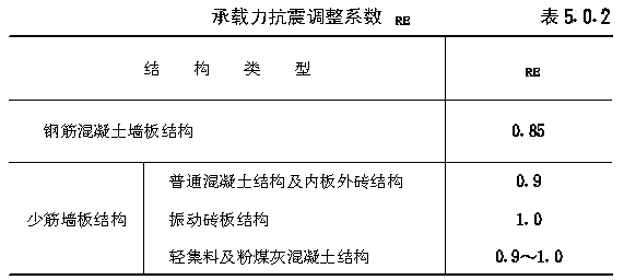 RE ——承载力抗震调整系数,按 表5.0.2 采用。对于少筋墙板结构构件的受剪、受扭及局部受压承载力计