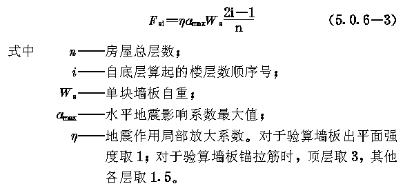 四、单块墙板沿出平面方向的地震作用F si 按 下式 计算,
