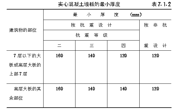 一、实心混凝土墙板的最小厚度应符合 表7.1.2 的规定;