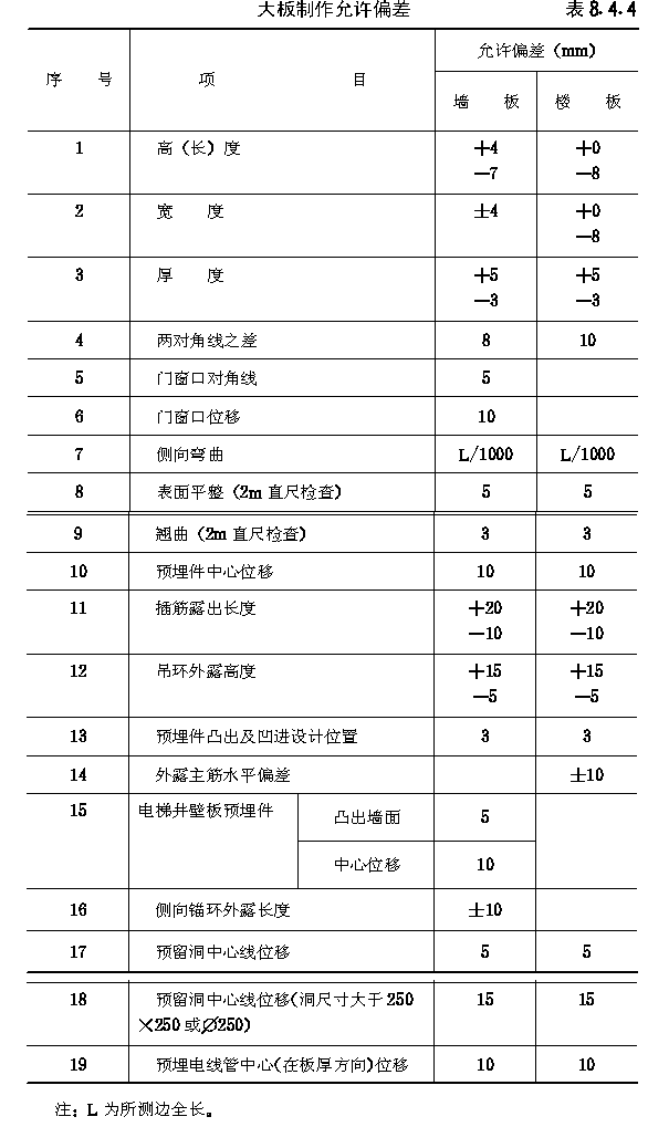 第 8.4.4 条大板制作偏差应符合 表8.4.4 的规定。