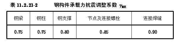 11.2.21 有地震作用组合时,型钢混凝土构件和钢构件的承载力抗震调整系数γ RE 应按 表11.2.21-1 和 11.2.21-2 选用。
