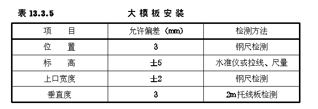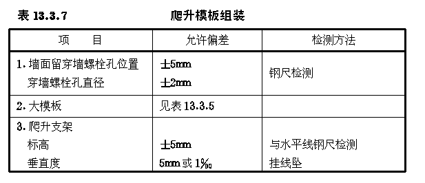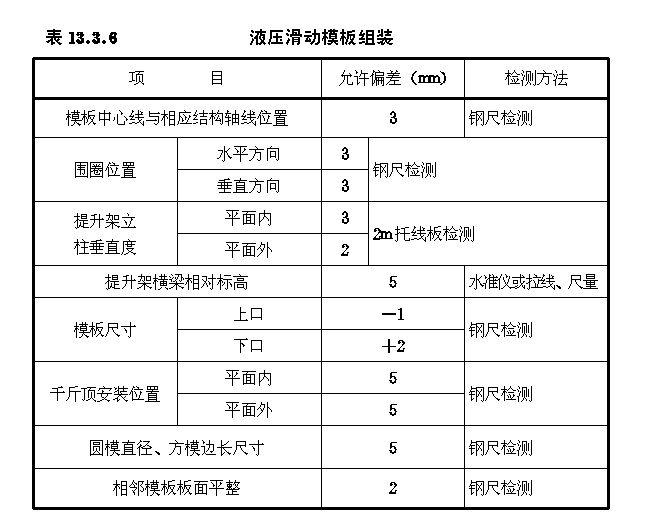 13.3模板工程 13.3.1 现浇混凝土结构,应根据结构类型、建筑造型和施工条件,选择适用的工具式模板及其支撑架;当需要清水混凝土时,模板应满足不抹灰的装饰效果要求。 挂装三角架支承上层外模荷载时,现浇外墙混凝土强度应达到7.5MPa。电梯井筒的内模宜选用由钢框胶合板或钢板等拼成的铰接式筒形大模板。模板拆除和吊运时,严禁挤撞墙体。 常温施工时墙体拆模强度不应低于1.0MPa;承受楼板荷载时,墙体强度不应低于4.0MPa。模板拆除后,应及时清除粘结在其表面的水泥浆,重复使用前应喷涂隔离剂,并不应污染钢筋及混凝土施工缝。大模板的安装应符合 表13.3.5 的规定。 13.3.6 液压滑动模板及其操作平台应进行整体的承载力、刚度和稳定性设计,并应满足建筑造型要求。滑升模板施工前应按连续施工要求,统筹安排液压机具和配件等。 滑升速度可控制在200~300mm/h,劳动力配备、工序协调、垂直运输和水平运输能力均应与滑升速度相适应。模板应有上口小、下口大的倾斜度,其单面倾斜度宜取为模板高度的1/1000~2/1000。混凝土出模强度应达到出模后混凝土不塌、不裂,宜为0.15~0.25MPa。 支承杆的选用应与千斤顶的构造相适应,长度宜为4~6m,相邻支承杆的接头位置应至少错开500mm,同一截面高度内接头不宜超过总数的25%。宜选用额定起重量为60kN以上的大吨位千斤顶及与之配套的钢管支承杆。液压滑动模板的组装应符合 表13.3.6 的规定。 13.3.7 爬升模板宜采用由钢框胶合板等组合而成的大模板,其高度应为标准层层高加100~300mm。模板及爬架背面应附有爬升装置。爬架可由型钢组成,高度应为3.0~3.5个标准层高度,其立柱宜采取标准节分段组合,并用法兰盘连接;其底座固定于下层墙体时,穿墙螺栓不应少于4个,底部应设有操作平台和防护设施。爬升装置可选用液压穿心千斤顶、电动设备、倒链等。爬升工艺可选用模板与爬架互爬、模板与模板互爬、爬架与爬架互爬及整体爬升等。 各部件安装后,应对所有连接螺栓和穿墙螺栓进行紧固检查,并应试爬升和验收。爬升时,穿墙螺栓受力处的混凝土强度不应小于10.0MPa;应稳起、稳落和平稳就位,不应被其他构件卡住;每个单元的爬升,应在一个工作台班内完成,爬升完毕应及时固定。爬升模板组装应符合 表13.3.7 的规定。穿墙螺栓的紧固扭矩为40~50Nm时,可采用扭力把手检测。 |