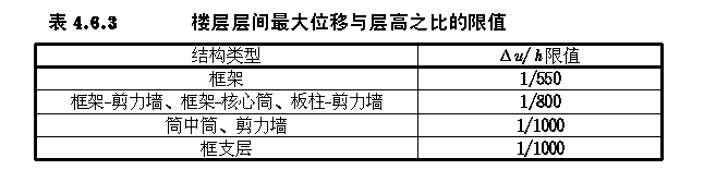 4.6.3 按弹性方法计算的楼层层间最大位移与层高之比Δu/h宜符合以下规定: