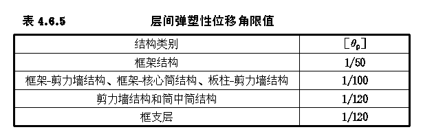 4.6.5 结构薄弱层(部位)层间弹塑性位移应符合下式要求: 表4.6.5