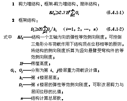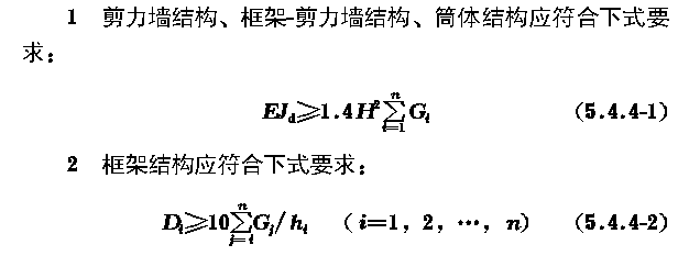 5.4.4 高层建筑结构的稳定应符合下列规定: 公式 |