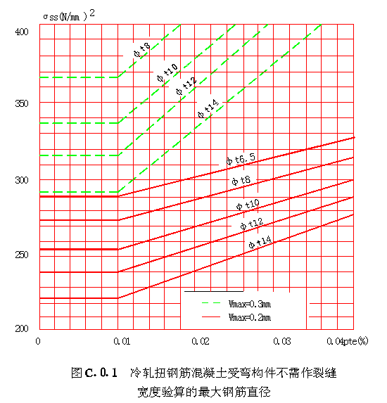 附录C 冷轧扭钢筋混凝土受弯构件不需作裂缝宽度验算的最大钢筋直径