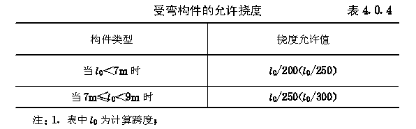 基本设计规定 4.0.1 冷轧扭钢筋混凝土结构构件使用阶段的安全等级宜与整个结构的安全等级相同,且所有构件的安全等级在施工阶段、使用阶段等各个阶段均不得低于三级。 4.0.2 结构构件的承载力计算,应按现行国家标准《建筑结构荷载规范》GBJ9的规定,采用荷载设计值;变形及裂缝宽度验算均应采用相应的荷载代表值。 4.0.3 对正常使用极限状态,结构构件应分别按荷载的短期效应组合、长期效应组合或短期效应组合并考虑长期效应组合的影响进行验算。其允许挠度、最大裂缝宽度均应符合本规程表4.0.4和表4.0.5规定的限值。 4.0.4 用于屋盖、楼盖和楼梯等的冷轧扭钢筋受弯构件的允许挠度值应符合表4.0.4的规定。悬臂构件的允许挠度值可按表中相应数值乘以系数2.0取用。当构件制作时预先起拱,且使用上也允许时,可在验算挠度时,将计算所得的挠度值减去起拱值。 4.0.5 冷轧扭钢筋受弯构件的最大裂缝宽度应符合表4.0.5的规定。 4.0.6 预制构件尚应按制作、运输及安装时的荷载设计值进行施工阶段的验算。进行构件的吊装验算时,应将构件自重乘以动力系数,动力系数可取1.5,但根据吊装时的受力情况,动力系数可适当增减。 4.0.7 叠合式受弯构件还应根据施工支撑情况按现行国家标准《混凝土结构设计规范》GBJ10的有关规定进行计算。 4.0.8 现浇板类构件可计入塑性内力重分布,其内力调幅值不宜大于15%。