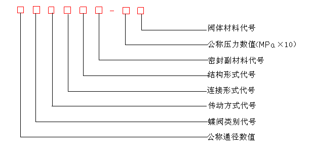 A1 蝶阀型号由下列八个单元组成,按下列顺序编制: 图