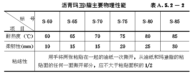 各种标号的沥青玛王帝脂主要物理性能应符合表A.5.2-2要求。