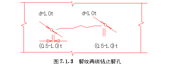 | 7 裂纹的修复与加固 7.1 一般规定 7.1.1 结构因荷载反复作用及材料选择、构造、制造、施工安装不当等产生具有扩展性或脆断倾向性裂纹损伤时,应设法修复。在修复前,必须分析产生裂纹的原因及其影响的严重性,有针对性地采取改善结构实际工作或进行加固的措施,对不宜采用修复加固的构件,应予拆除更换。在对裂纹构件修复加固设计时,应按《钢结构设计规范》(GBJ17-88)第6.2.1条至6.2.3条规定进行疲劳验算,必要时应专门研究,进行抗脆断计算。 7.1.2 为提高结构的抗脆性断裂和疲劳破坏的性能,在结构加固的构造设计和制造工艺方面应遵循下列原则:降低应力集中程度,避免和减少各类加工缺陷,选择不产生较大残余拉应力的制作工艺和构造形式,以及采用厚度尽可能小的轧制板件等。 7.1.3 在结构构件上发现裂纹时,作为临时应急措施之一,可于板件裂纹端外(0.5~1.0)t(t为板件厚)处钻孔 (图7.1.3) ,以防止其进一步急剧扩展,并及时根据裂纹性质及扩展倾向再采取恰当措施修复加固。 |