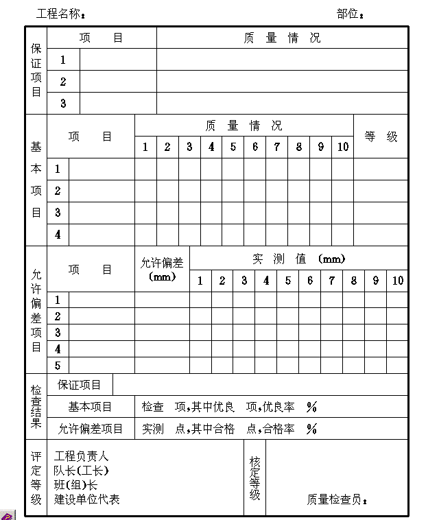 附录A 分项工程质量检验