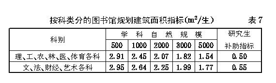 第十八条 按科类分的图书馆规划建筑面积指标不宜超过 表7 的规定。
