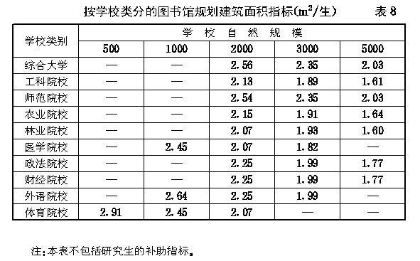 第十九条 按学校类别分的图书馆规划建筑面积指标不宜超过 的 表8 规定。