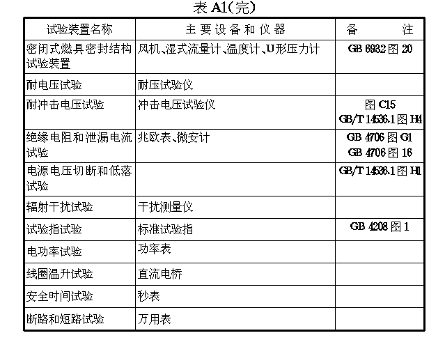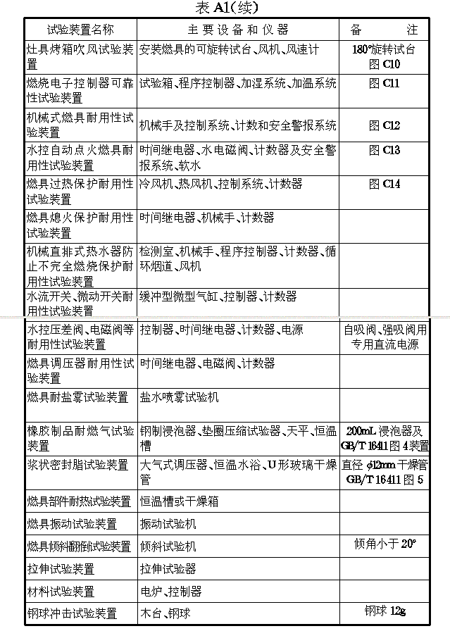 表A1燃具试验装置