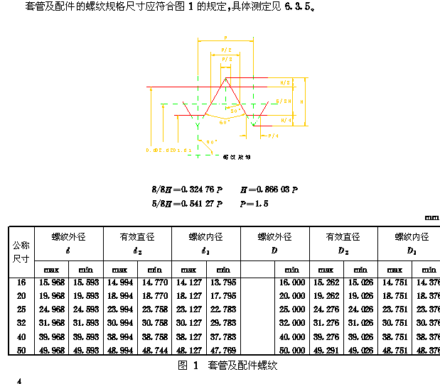 5.1.2 套管及配件的螺纹规格尺寸 套管及配件的螺纹规格尺寸应符合图1的规定,具体测定见6.3.5。