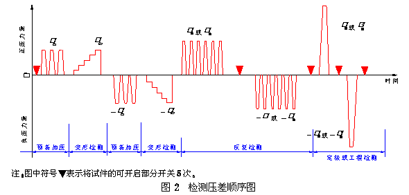 检测试件在压力差P 2 (定级检测时)或P′2(工程检测时)的反复作用下,是否发生损坏和功能障碍。