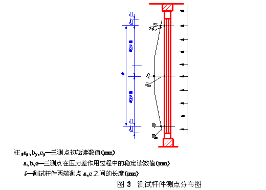 5.4.1 确定测点和安装位移计将位移计安装在规定位置上。测点位置规定为:中间测点在测试杆件中点位置;两端测点在距该杆件端点向中点方向10mm处(见 图3 )。