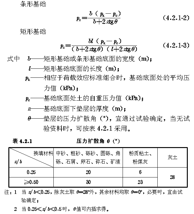θ———压力扩散角,可按表4.2.1采用;当z/b<0.25