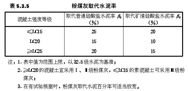 2粉煤灰取代水泥率应按 表5.3.5 的要求确定;
