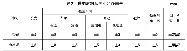 技术要求 5.1 材料 5.1.1 水泥 应采用不低于425号的水泥,其性能应符合GBJ175的规定。 5.1.2 钢筋 应采用1级钢筋或冷拔碳钢丝。其性能应符合GB343或GB701的规定。 5.1.3 骨料 轻骨料及细石粒径不应大于排烟道壁厚的1/3,其性能应符合JGJ51、JGJ52、JGJ53、GBJ204的规定。 5.1.4 使用外加剂应符合GBJ119的规定。 5.2 外观质量 5.2.1 排烟道制品的内外表面不应有裸露钢筋、蜂窝、塌陷和空鼓现象。 5.2.2 排烟道流通截面为矩形时,拐角应做成圆角。排烟道内的预留进烟口应通畅无堵塞。 5.2.3 排烟道内表面应平整、光滑,不允许有裂缝(但表面龟裂和砂浆层干缩裂缝不在此限)。 5.2.4 有下列情况的排烟道允许修补: a.粘皮、麻面、蜂窝不应超过总面积的1/20;每块面积不超过50cm2。 b.烟道两端破损,宽不应超过边长的1/10,高不应超过100mm。 c.端部主支隔板破损,宽不应超过边长的1/10,高不应超过20mm。 5.3 尺寸允许偏差 5.3.1 排烟道尺寸允许偏差应符合表2的规定。 5.3.2 排烟道两端面应与烟道中心轴线相垂直。 5.4 物理性能 5.4.1 混凝土 轻骨料混凝土和细石混凝土的强度等级一般不得低于C20级。 5.4.2 排烟道侧壁吸水率不应大于16%。 5.4.3 排烟道制品的耐火极限不应低于1.2h。 |