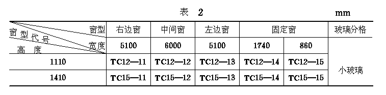 2 分段开启扇的基本窗规格代号(