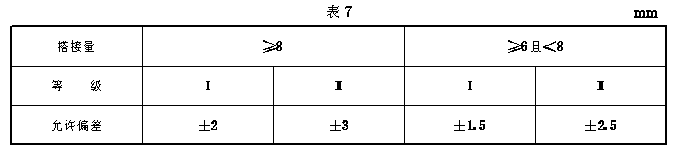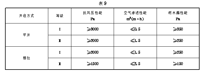 技术要求 4.1 材料 4.1.1 型材原材料应为建筑门窗外用彩色涂层钢板,涂料种类为外用聚酯,基材类型为镀锌平整钢带,其技术要求应符合GB/T12754中的有关规定。 4.1.2 门窗常用辅助材料及配件应符合现行国家标准、行业标准中的有关规定,参照附录A(提示的附录)。 4.2 外型尺寸 4.2.1 门窗的宽度、高度尺寸允许偏差应符合表5规定。 4.2.2 门窗两对角线允许长度偏差应符合表6规定。 4.3 搭接量 4.3.1 平开门窗框与扇、梃与扇的搭接量应符合表7规定。 4.3.2 推拉门窗安装时调整滑块或滚轮使之达到设计及使用要求。 4.4 联接与外观 4.4.1 门窗框、扇四角处交角缝隙不应大于0.5mm,平开门窗缝隙处用密封膏密封严密,不应出现透光。 4.4.2 门窗框、扇四角处交角同一平面高低差不应大于0.3mm。 4.4.3 门窗框、扇四角组装牢固,不应有松动、锤迹、破裂及加工变形缺陷。 4.4.4 门窗各种零附件位置应准确,安装牢固;门窗启闭灵活,不应有阻滞、回弹等缺陷,并应满足使用功能。 4.4.5 平开窗分格尺寸允许偏差为±2mm。 4.4.6 门窗装饰表面涂层不应有明显脱漆、裂纹,每樘门窗装饰表面局部擦伤、划伤等应符合表8规定 4.4.7 门窗相邻构件漆膜不应有明显色差。 4.4.8 门窗橡胶密封条安装后接头严密,表面平整,玻璃密封条无咬边。 4.5 性能 4.5.1 彩板窗的抗风压性能、空气渗透性能和雨水渗漏性能应符合表9规定。 4.5.2 建筑外用的彩板门的抗风压性能、空气渗透性能和雨水渗漏性能按GB13685及GB13686规定方法检测,分级下限值应符合表10、表11、表12规定。 4.5.3 保温窗的外窗保温性能按GB8484规定方法检测,分级值应符合表13规定,凡传阻R0≥0.25m2.K/W者为保温窗。 4.5.4 隔声窗外窗的空气隔声性能应按GB8485规定的方法检测,分级值应符合表14规定,凡计权隔声量Rw≥25dB者为隔声窗。 4.5.5 建筑用门空气隔声性能应按GB16730建筑用门空气隔声性能分级及其检测方法(报批稿)检测,分级值应符合表15规定。 4.5.6 建筑外门保温性能按GB16729建筑外门保温性能分级及其检测方法(报批搞)检测,分级值应符合表16规定。 |