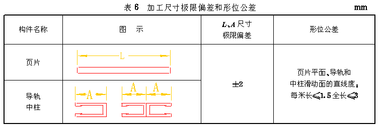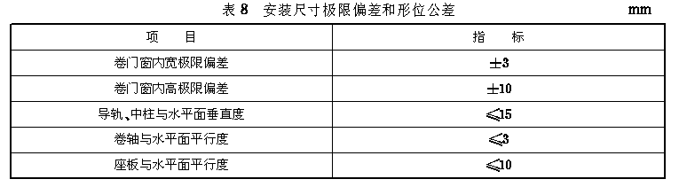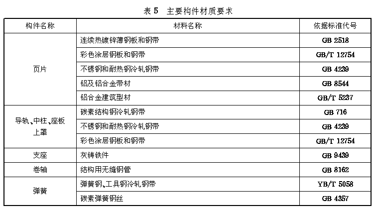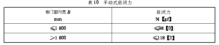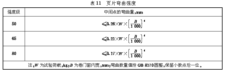 技术要求 4.1 卷门窗应符合本标准要求,并应按规定程序批准的图样及技术文件制造。 4.2 卷门窗主要构件的材质(应符合表5规定)。 4.3 外购件要求 卷门机、电器元件及五金配件等应符合相应标准规定,并附有产品质量合格证。 4.4 零件加工要求 4.4.1 相对运动或装配后与人体接触的零件,在切割、弯曲、冲钻等加工处,必须清理毛刺。 4.4.2 主要构件的加工尺寸极限偏差和形位公差应符合表6规定。 4.5 表面处理 铝合金零件表面应进行氧化处理,其膜厚不小于10μm;钢制零件表面应进行镀锌、涂漆或喷塑。 4.6 装配和安装要求 4.6.1 铆接、螺接和焊接处应牢固可靠,不得有松动、开裂、未熔化、气孔和夹渣。 4.6.2 页片相互啮合应灵活,防窜装置应牢靠。 4.6.3 导轨和轴承架安装应牢固,导轨预埋钢件间距不得大于600mm。 4.6.4 中柱应装卸方便,安装后不得产生扭曲和回转。 4.6.5 锁具安装位置分为两种,卷门锁具可安装在距地面约1m处,卷窗锁具安装在座板上。启闭应灵活、可靠。 4.6.6 页片嵌入导轨或中柱中的深度应符合表7规定。 4.6.7 卷门窗安装尺寸极限偏差和形位公差应符合表8规定。 4.7 外观要求 4.7.1 页片、导轨、中柱、上罩、卷轴等零、部件的表面,应平整光洁,不得有裂纹、扭曲、压坑及明显的凹凸、锤痕等缺陷。 4.7.2 卷门窗外表面应色调一致,无明显色差。 4.7.3 产品铭牌应位置端正、牢固,字体规整、清晰。 4.8 电气安装 4.8.1 电气安装应布线合理,操纵方便、灵活、准确。 4.8.2 各电路的绝缘电阻应符合表9规定。 4.9 启闭性能 4.9.1 手动式卷门窗 手动式卷门窗的启闭应平衡、顺畅,手动启闭力应符合表10规定。 4.9.2 电动式卷门窗 电动式卷门窗的启闭性能应符合下列规定: a)页片能顺畅滑动; b)启闭速度为3~7m/min; c)启闭过程中能在任何位置停止; d)启闭至上、下限时,能自动停止; e)当温升超过电器元件的规定温升时,能自动切断电源; f)当电源电压在90%~110%额定电压范围内波动时,卷门窗能正常启闭。 g)切断电源后,能用手力启闭,其启闭力不大于118N。 4.10 强度 4.10.1 页片弯曲强度应符合表11规定。 4.10.2 中柱弯曲强度应符合表12规定。 4.10.3 插销弯曲强度 插销经弯曲试验后,不应有影响使用的残余变形。 |