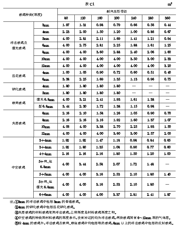 附录C 平板玻璃的最大允许面积(参考件)