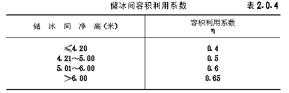 第二章 计算的一般规定 第2.0.1条 冷库的设计规模应以冷藏间或储冰间的公称容积为计算标准。 第2.0.2条 冷库贮藏吨位可按下式计算。 第2.0.3条 冷藏间容积利用系数不应小于表2.0.3的规定值。 第2.0.4条 储冰间容积利用系数不应小于表2.0.4的规定值。 第2.0.5条 食品计算重度应按表2.0.5的规定采用。 第2.0.6条 冷库设计的室外气象参数除应采用现行的《采暖通风和空气调节设计规范》的规定外,尚应符合下列规定: 一、库房围护结构传入热量计算的室外计算温度,应采用夏季空气调节日平均温度;计算库房围护结构最小总传热阻时的室外空气相对湿度,应采用最热月平均相对湿度; 二、开门热量和冷间换气热量计算的室外温度,应采用夏季通风温度,室外相对湿度应采用夏季通风室外计算相对湿度; 第2.0.7条 冷间设计温度和相对湿度应根据各类食品冷藏工艺要求确定。一般可按附录一规定选用。 |