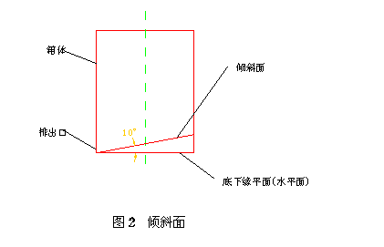 6.9 设下排除口的废物箱箱底应设置与底下缘平面(水平面)夹角不小于10°的倾斜面(见 图2 )。