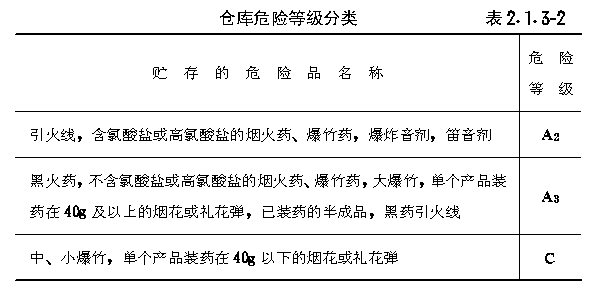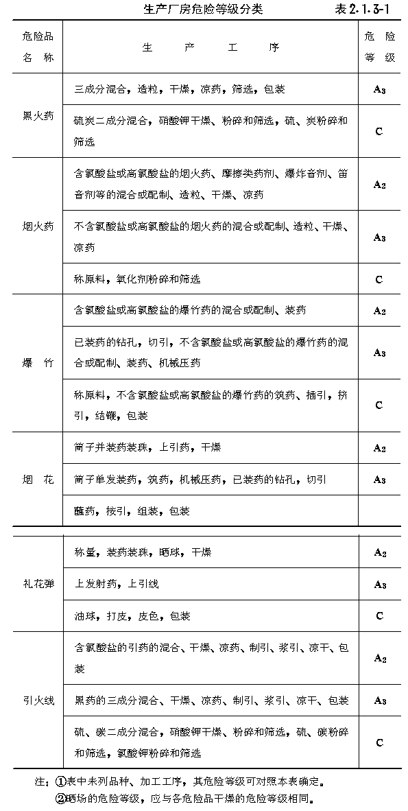第二章 建筑物危险等级分类和计算药量 第一节 建筑物危险等级分类 第2.1.1条 建筑物的危险等级,应按下列规定划分为A、C两级: 一、A级建筑物为建筑物内的危险品在制造、贮存、运输中会发生爆炸事故,在发生事故时,其破坏效应将波及到周围。根据其破坏能力应划分为A 2 、A 3 级。 1.A 2 级建筑物为建筑物内的危险品发生爆炸事故时,其破坏能力相当于梯恩梯的厂房和仓库; 2.A 3 级建筑物为建筑物内的危险品发生爆炸事故时,其破坏能力相当于黑火药的厂房和仓库。 二、C级建筑物为建筑物内的危险品在制造、贮存、运输中主要发生燃烧事故或偶尔有轻微爆炸,但其破坏效应只局限于本建筑物内的厂房和仓库。 第2.1.2条 厂房的危险等级应由其中最危险的生产工序确定。仓库的危险等级应由其中所贮存最危险的物品确定。 第2.1.3条 危险品生产厂房的危险等级分类,应符合 表2.1.3-1 的规定。 危险品仓库的危险等级分类,应符合 表2.1.3-2 的规定。 第2.1.4条 贮存氧化剂的火灾危险性分类,应符合现行国家标准《建筑设计防火规范》的规定。 |