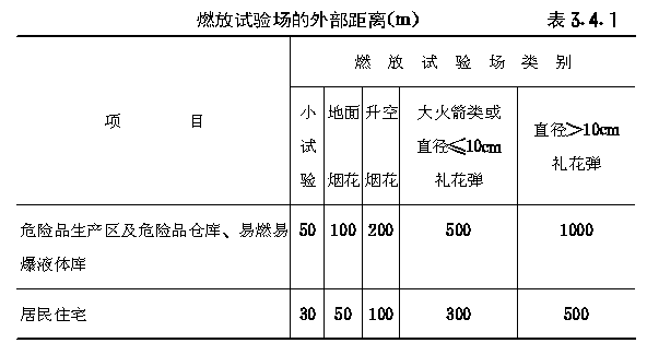 第3.4.1条 燃放试验场的外部距离,不应小于表3.4.1的规定。
