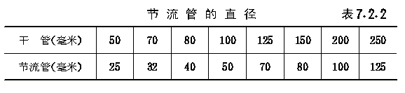 第7.2.2条 节流管内流速不应大于20米/秒。节流管的长度不宜小于1米。节流管的直径宜按表7.2.2的规定选用。