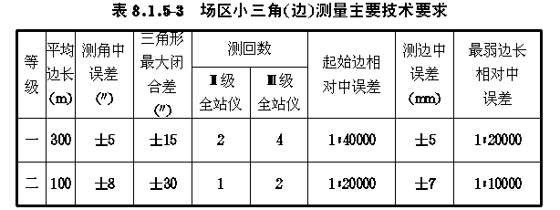 8.1.5 平面控制网可一次布设,也可分两级布设,各种形式平面控制网的主要技术要求应分别符合 表8.1.5/1 、 8.1.5/2 和 8.1.5/3 的要求。