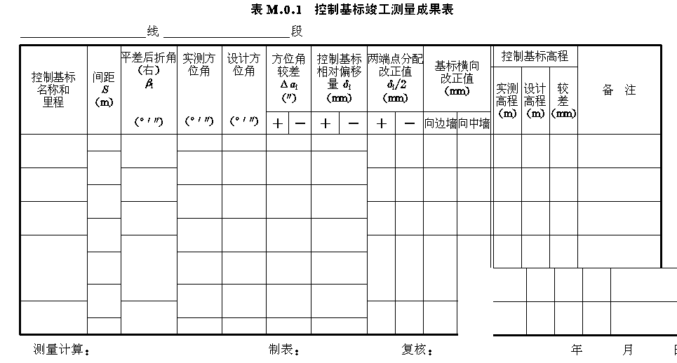 M.0.1 控制基标竣工测量成果表(见 表M.0.1 )。